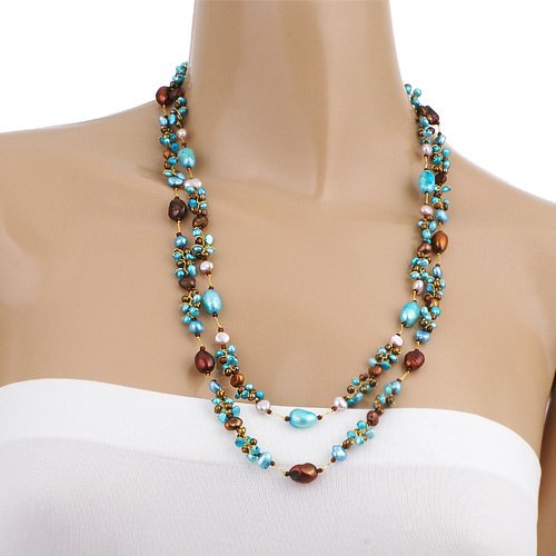 This beautiful freshwater pearl necklace would be a wonderful addition to any wardrobe. The included black velvet pouch makes it the perfect gift for someone special. Made from genuine freshwater pearl and silk thread.