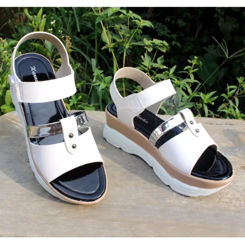 Velco Strap Wedges Sandal Hanna Marlee AMG-12 Putih