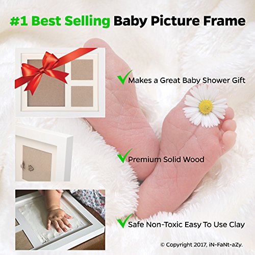 Baby Hand and Foot Prints Picture Frame Kit with Clay-Perfect for Baby Shower Baby Registry and Gender Reveal Party for Moms and Grandparents-Unique Baby Room Decor for Baby Girls and Baby Boys