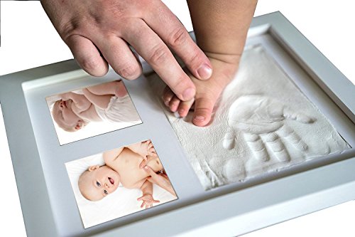 - ✓THE KIT HAS IT ALL FOR YOU! The frame is solid wood and real glass (NOT acrylic), the clay is non-toxic and mess-free, won’t stick to your baby’s hands or feet, and of course is absolutely safe for babies. A COMPLETE KIT No additional ingredients or items required, the kit includes everything you need. We even include double-sided tape to keep the two pictures firmly in place.