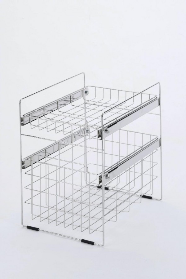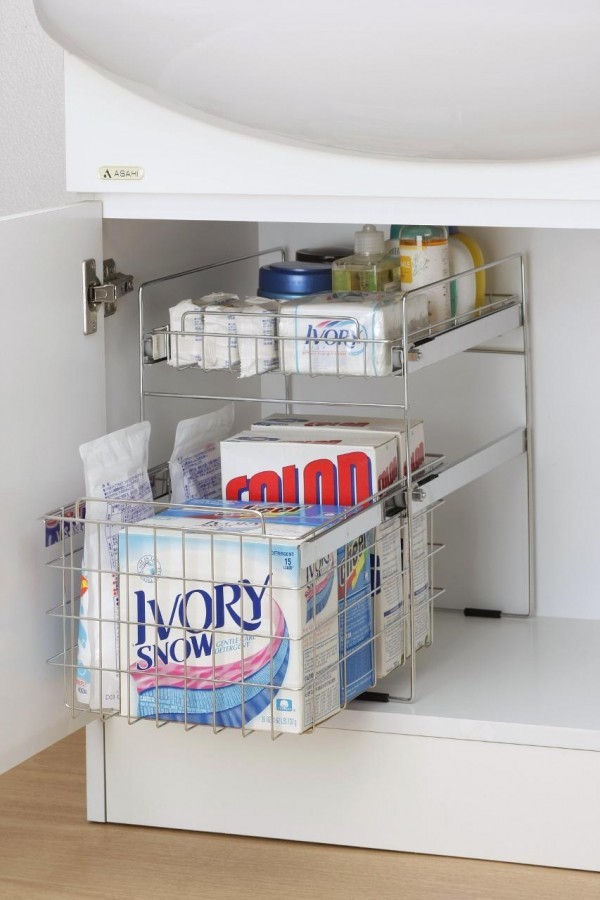 | 湿気の多い洗面台下に最適の18-8ステンレス製!お手入れも簡単で、永くお使いいただけます。脚元にはすべり止めのゴムクッション付き。安定性も十分です。浅め・深めのカゴで収納も便利です。洗剤や石鹸のストックに最適です! |
