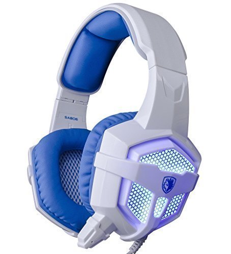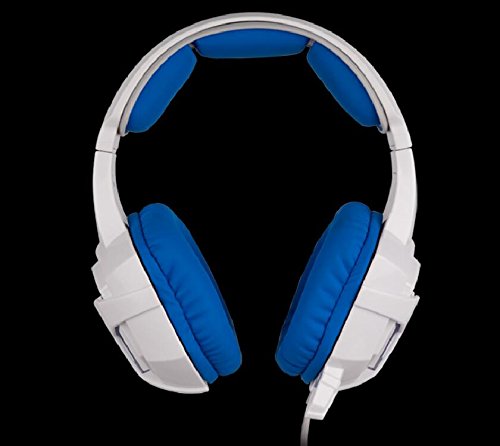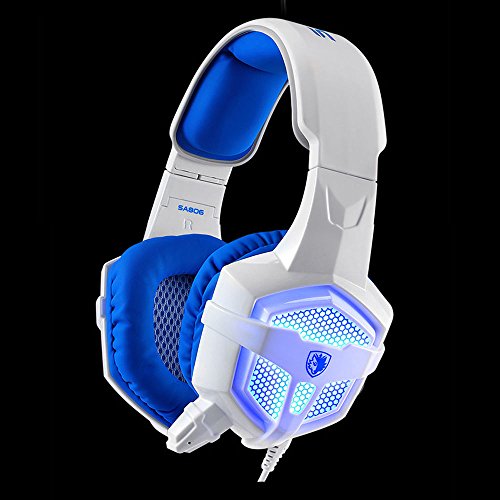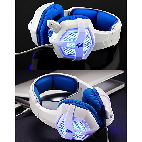 Sades SA-806 USB 3.5mm Professional Stereo Gaming Headphone Blue Led Lighting Headsets with Microphone for Laptop PC(White-Blue)