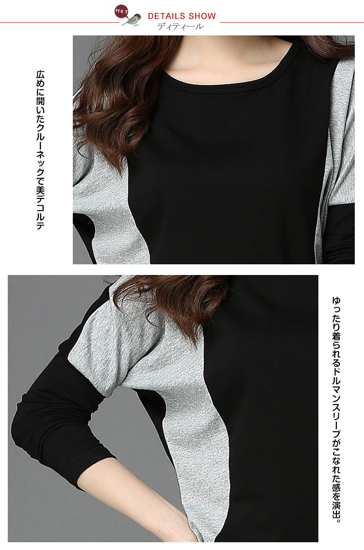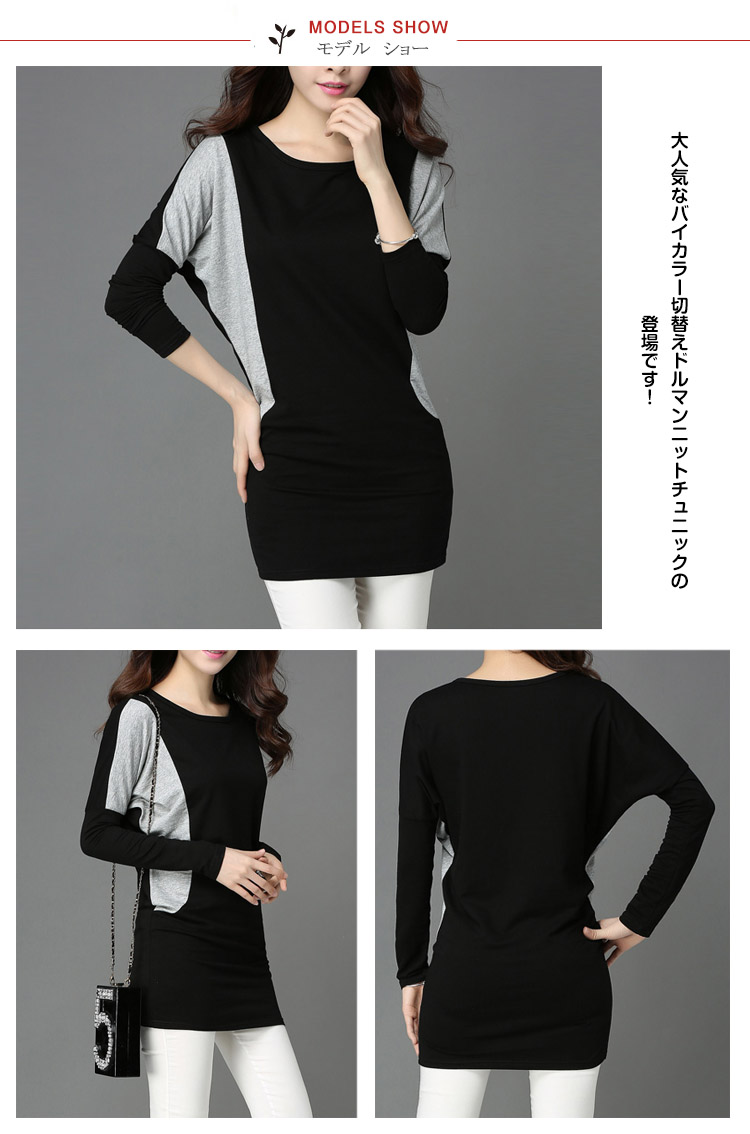 | 大人気なバイカラー切替えドルマンニットチュニックの登場です!広めに開いたクルーネックに、ゆったり着られるドルマンスリーブがこなれた感を演出。フロント肩からウエストにかけて切替えになったバイカラーデザインでウエストを細く魅せてくれる効果も期待できちゃいます!また、裾がすぼまったデザインはルーズ&フィットのメリハリのあるスタイルに☆肌触りの柔らかなライトニット素材だから着心地もバツグン◎シンプルなデザインだからレギンスや派手小物とも相性バッチリ!! | |