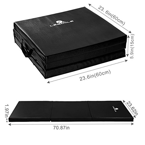 Lesmile Gymnastics Mat,PU Leather Exercise Mat Gym Folding Tumbling Mat