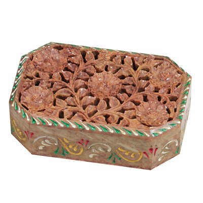 Soapstone Box - Five Flower Carved Box