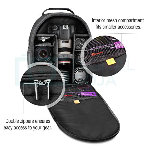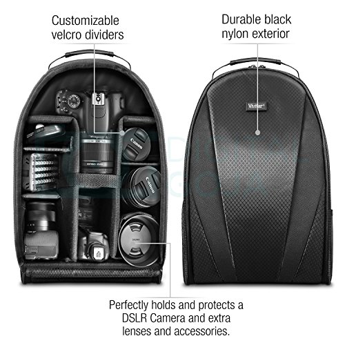 -. Binding : Electronics -. Brand : Digital Goja -. Color : Black -. EAN : 0841507106440 -. Feature : MULTI-USE: This lightweight, sturdy backpack offers versatile storage compartments that allows you to fit your camera, accessories, and other personal belongings in one safe and convenient place! / FEATURES: Holds a DSLR camera with a standard zoom lens and allows you to fit extra lenses or accessories. / HIGH QUALITY INTERIOR: Padded customizable dividers, and mesh compartments fits all your photography gear and includes space for smaller accessories. / SATISFACTION GUARANTEE: Backed with Digital Goja 90-Day 100% Satisfaction Guarantee. -. Label : Digital Goja -. Manufacturer : Digital Goja -. Model : KZ0105 -. MPN : KZ0105 -. PackageQuantity : 1 -. PartNumber : KZ0105 -. ProductGroup : CE -. ProductTypeName : CAMERA_BAGS_AND_CASES -. Publisher : Digital Goja -. Studio : Digital Goja -. Title : Vivitar Camera Backpack for DSLR Camera and Accessories -. UPC : 841507106440