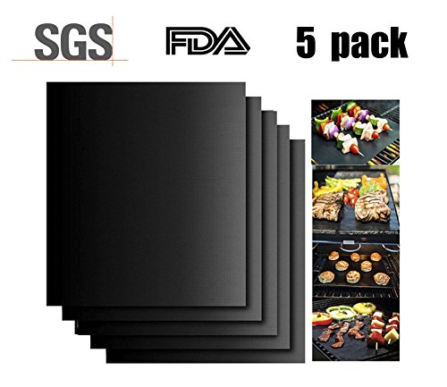 Grill Mats BBQ Barbecue Special Pad 100 Percent Non-Stick 5 Packs and Baking Mats FDA-Approved, PFOA , Reusable and Easy to Clean Size 13x 16 inches for Gas Charcoal Electric Ovens