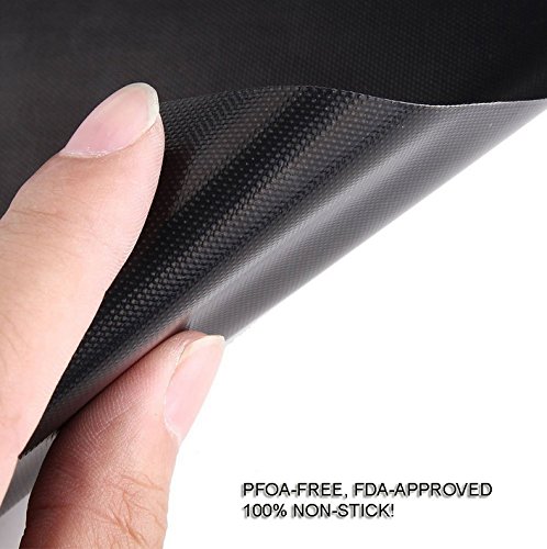 Security Assurance---These grill mats are made from high fiberglass fabric coated PTFE (Teflon), No PFOA, silicone or other dangerous chemicals! Certified as safe by the FDA approved and guaranteed by a lifetime warranty.