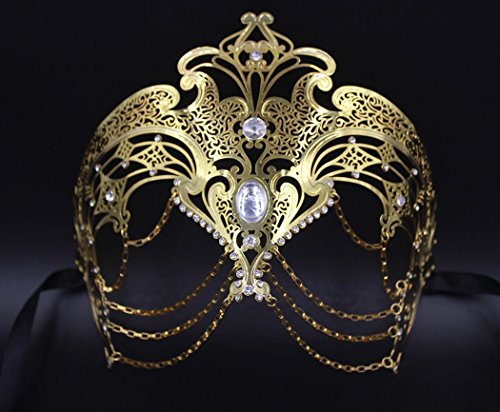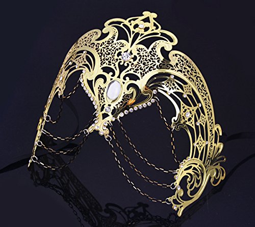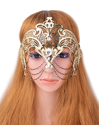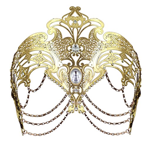 -. Title : Masquerade Mask Women's Laser Cut Metal Venetian Party Mask Gold