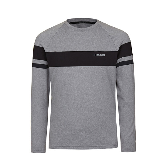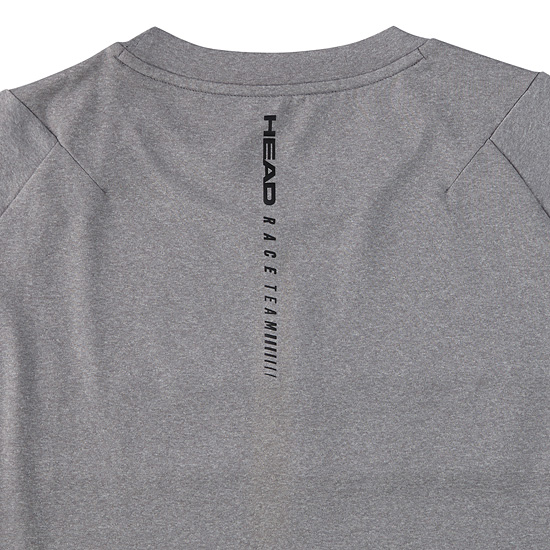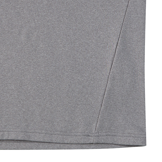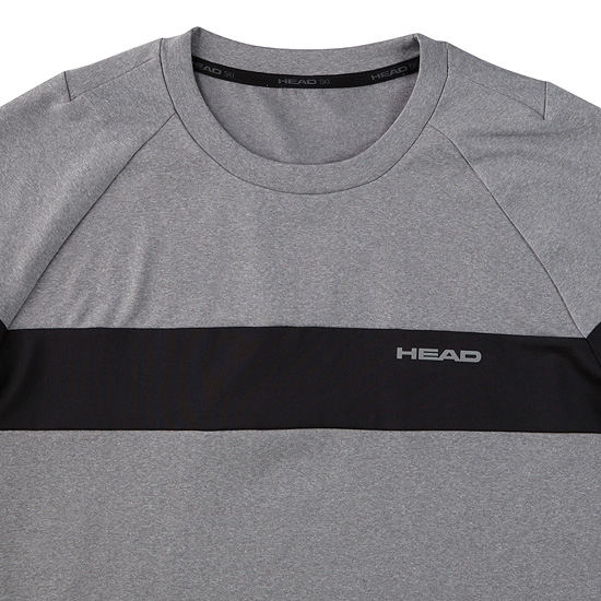 - 멜란지 바탕에 중앙 솔리드 배색으로 포인트를 준 남성 티셔츠.