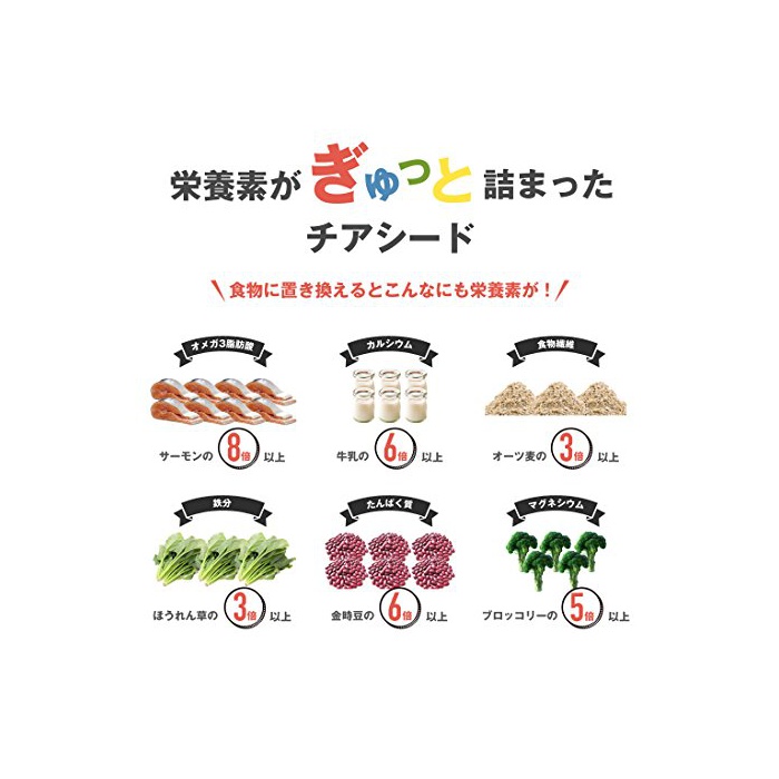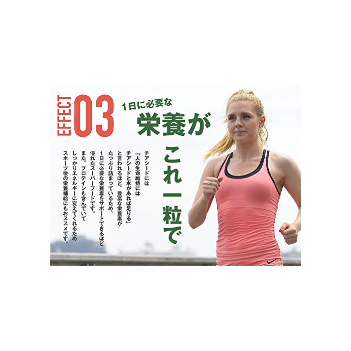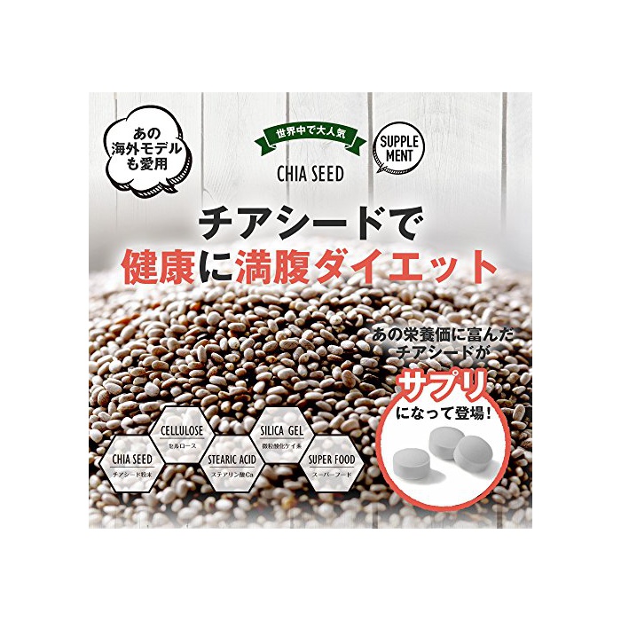 슈퍼 후드라고 하기만 하고, 영양소를 숨겨 있는 분칼로리도 넉넉하다.본 사프리(supplement)는 치아시드(Chia Seed)30%에,장활파워의 셀룰로오스,약견 네 서포트의 스테아린산을 배합하고, 1일의 섭취 기준량2알 당첨되어 0.79kcal에 헬씨를 서포트.일상의 레시피(요리처리법)부터는 섭취하기 어려운 성분을 오피스에서도 간편하게 차지에 옵니다.