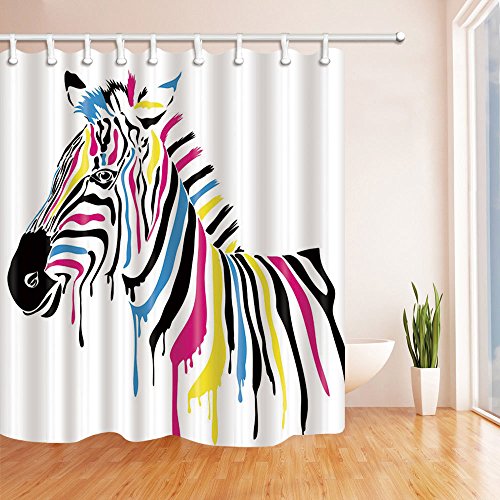 Battlehymn Mildew Resistant Polyester Fabric Bathroom Shower Curtain Liner ,Waterproof/Water-Repellent Anti-Bacterial - Non Toxic, No Chemical Odor, Rust Proof Grommets,72x72, Zebra Rainbow Color