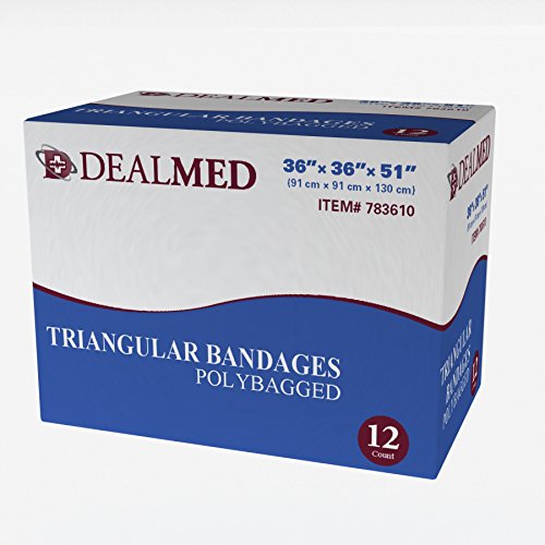 Dealmed wound care products represent over a decade of quality and innovation trusted by health care professionals around the world. Multi-purpose bandage to compress various injuries; support sprains and/or broken bones. For use as arm sling, cravat bandage or cover for head dressing. Individually polybagged Complete with two safety pins. 12 bandages per box.