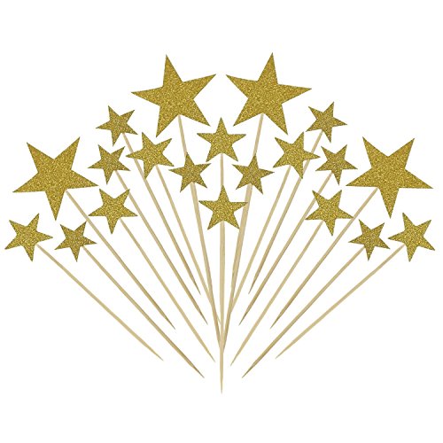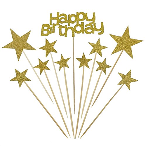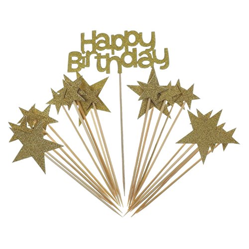 The Cupcake Toppers Include 1 Happy Birthday Cake Topper and 20 Star Picks. Gold star cupcake picks of 3 different sizes, respectively as 2 inches (5 cm), 1.2 inches (3 cm), 1 inches (2.5 cm).
