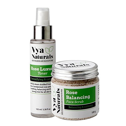 Vya Naturals Radiant Skin Duo Bundle with Vya Naturals Rose Facial Scrub - With Real Rose Petals and Vya Naturals Rose Water Facial Toner- 100% Natural...