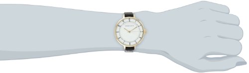 - Feature : Gold-tone dress watch featuring large round white dial with Arabic hour markers and thin croco-embossed leather band / Japanese quartz movement with analog display / Case diameter: 36mm / Features mineral crystal dial window, buckle closure, and black printed minute track / Water-resistant to 99 feet (30 M): withstands rain and splashes of water, but not showering or submersion