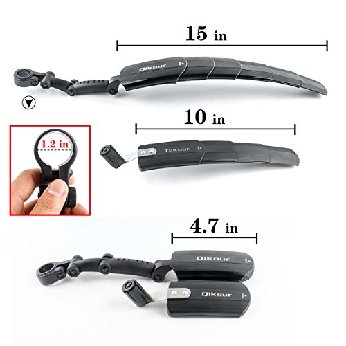 Features: Perfect fender for any road or MTB cyclist. Easy to install and remove. Durable and Light Weigh. Adjustable height of the rear mudguard. Applicable to the seat rod diameter less than 34MM various mountain bike, road bike, MTB, etc. Keep your bicycle dryer and cleaner. Specifications: Extendable length:Front(300mm),Rear(400mm) Shrink length:Front(120mm),Rear(130mm) Weight: Front: 2.6 ounces / Rear: 4.0 ounces Width: Front: 2.4 inches(60mm) / Rear: 2.8 inches(70mm) Package Included: 1 * Front Bicycle Mudguard 1 * Rear Bicycle Mudguard 1 * User Manual Tips: This bike fender set is not suitable for folding bike. 0 |