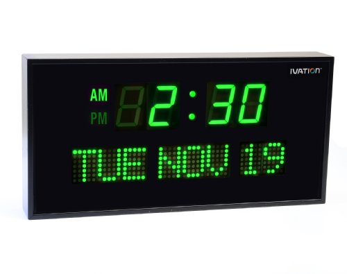 Large and wide, the clock has a beautiful, bright display that shows the time clearly with AM and PM indicator that shines. The calendar in the lower part is showing day of the day of the week and the date.If you have an aging parent, especially one with low vision or who has a memory issue, they will find this product very useful. All the information they need, displayed clearly to them with big letters. They will be thank you for this gift.