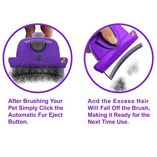 ★EASY TO CLEAN - When you're done brushing your pet, Simply click the automatic fur eject button and the excess hair will fall off the brush, making it ready for the next time use.