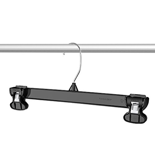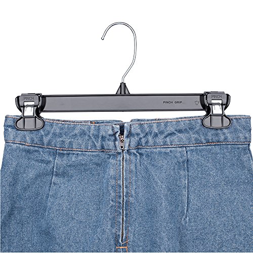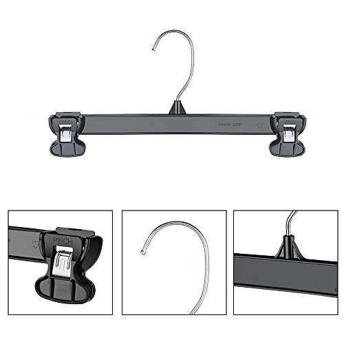 -. Feature : UPGADE PINCH GRIP CLIPS. Instead of a smooth plastic piece, inner is a small ridges design which will not damage your delicate clothes but strong enough to hold up to 10lbs garments securely. / SPACE-SAVING DESIGN - 12 Inches Pinch Grip Pants Hangers are made from sturdy break resistant black plastic and keep your clothes organized without creating added bulk in your closet. / CHROME SWIVEL HOOK - Pinch Grip Pants Hangers are with chrome polished shiny hook and the hooks are pretty firm to hold all your clothes in place. / PINCH GRIP PANTS HANGERS - HOUSE DAY 12 Inches Black Pinch Grip Pants Hangers are perfectly designed to keep your clothes neat, tidy, and wrinkle-free. / BEST P.R.ICE - HOUSE DAY Pinch Grip Hangers are at a great P.R.Ice and excellent quality,ideal for hanging standard size clothes,such as pants ,skirts and so on.