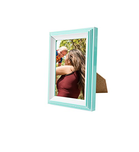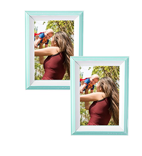 MDF Mint/White Contemporary Picture Frame 5X7 Photo Display with Glass Front, Easel Back, Hanging Clip | 2 PIECE SET(Mint/White, Set of 2)