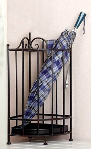 -. Title : MyGift Corner Umbrella Stand with Drip Tray, Entryway Storage Rack, Black