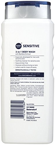 -. Binding : Health and Beauty -. Brand : Nivea Men -. Label : Nivea For Men -. Manufacturer : Nivea For Men -. MPN : 81084B-B -. PackageQuantity : 2 -. PartNumber : 81084B-B -. ProductGroup : Beauty -. ProductTypeName : BEAUTY -. Publisher : Nivea For Men -. Studio : Nivea For Men -. Title : Nivea For Men Body Wash - Sensitive - 16.9 oz - 2 pk