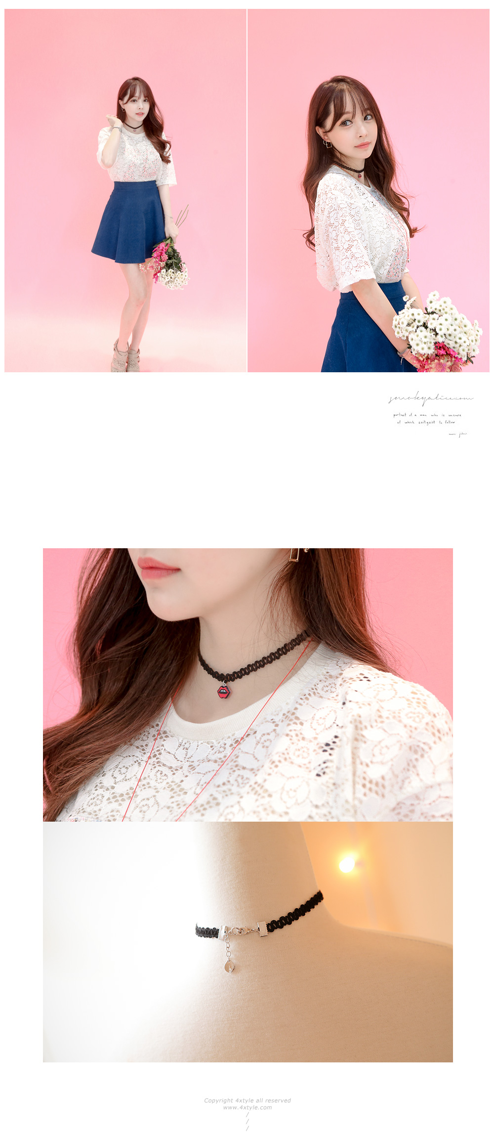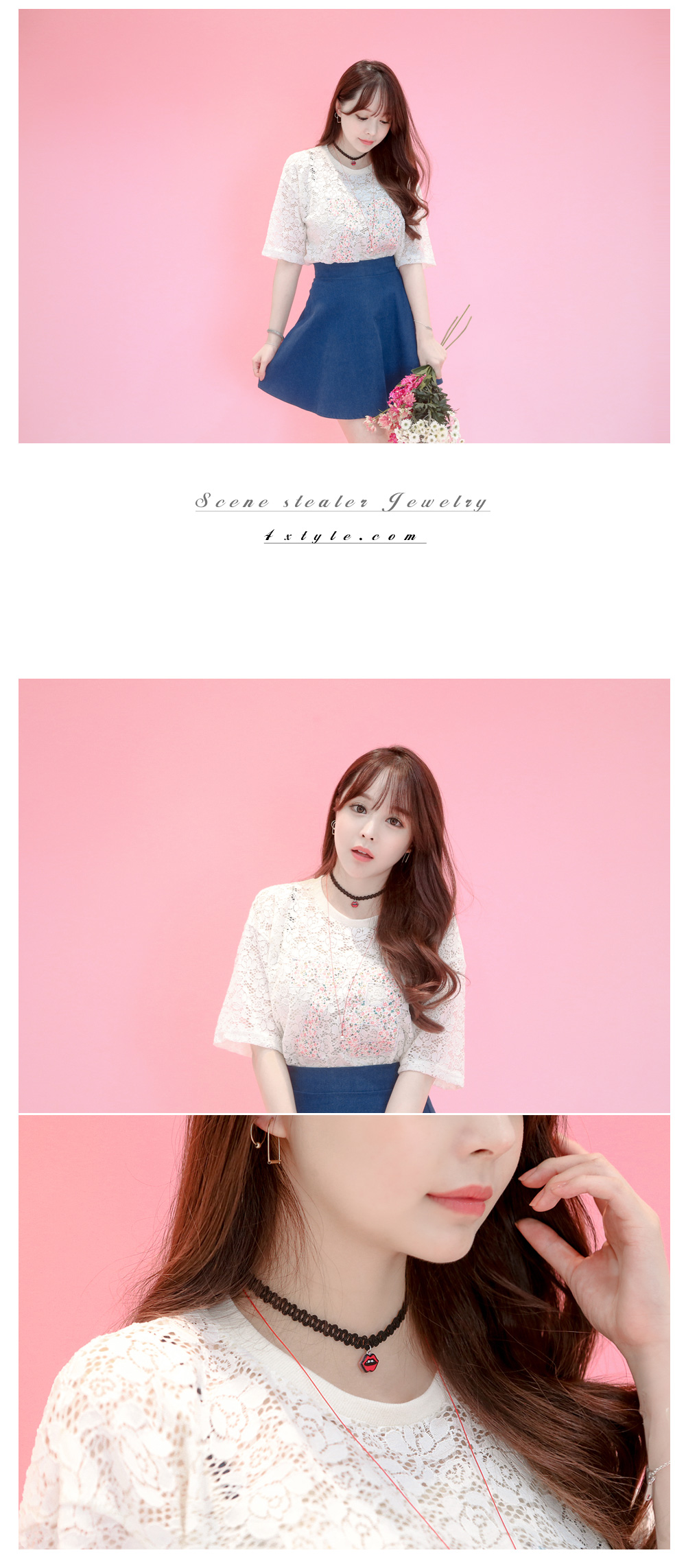 미세한 탄성이 있는 블랙톤 레이스 초커 체인과 매치되어 감각적이고 세련된 아이템이예요.