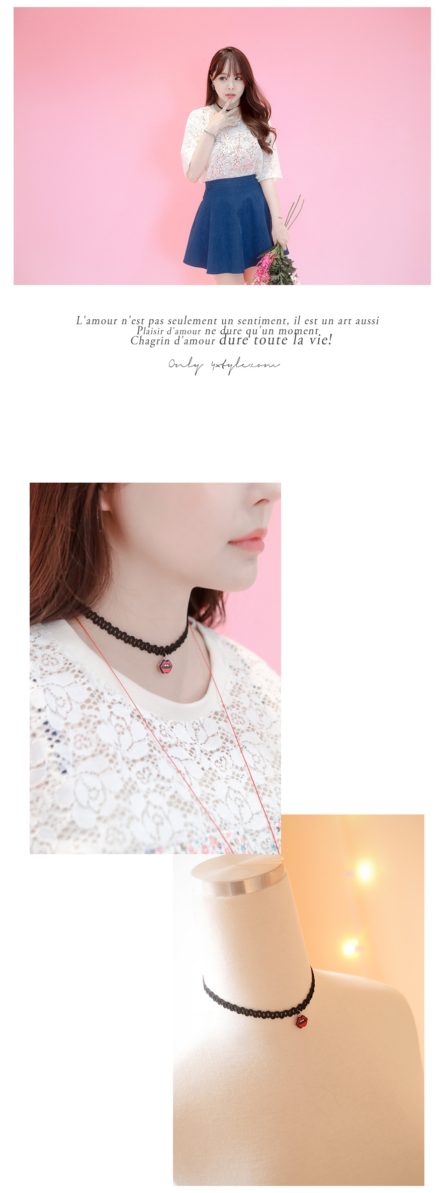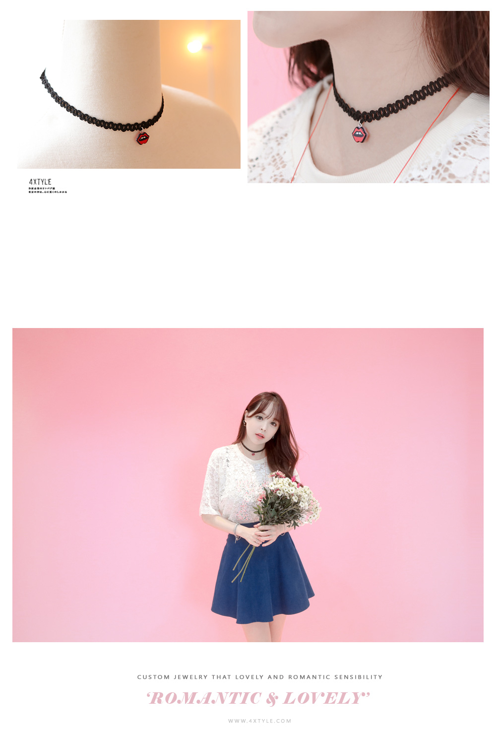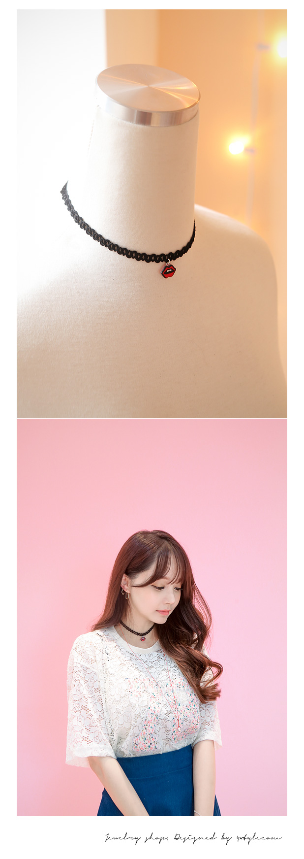 빨간 입술의 펜던트가 키치한 레브흐 초커 목걸이입니다.