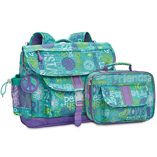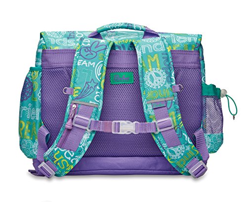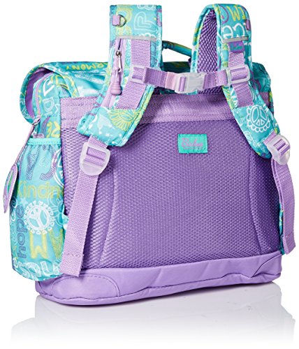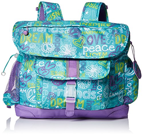 It’s never too early to start changing the world! Our Hope, Peace and Love collection will inspire even the smallest set to live in harmony?all while making our world a more stylish place! As pretty as it is pure in message, the duffels, backpacks, purses and lunchbox are sure to encourage kids to become the change they want to see in the world. Perfectly sized to carry everything your tyke needs, this backpack features a patented horizontal design with ergonomic attributes. The cover flap pocket opens to a main compartment with plenty of space for books, binders and notebooks. A padded sleeve pocket protects a laptop or tablet. Three interior organizer pockets hold small necessities like pencils, pens, crayons and an mp3 player. Even when it's packed to the brim, this backpack feels comfortable on kid shoulders, thanks to contoured shoulder straps with cushy padding. Five exterior pockets (including a lunch money pocket and water bottle holder) plus an ID holder helps you stay organized. Made of durable, water-resistant 600-denier polyester, this backpack is made to last and cool-looking, too. Overall Measurements: - Medium:?13” wide x 5” deep x 11” high