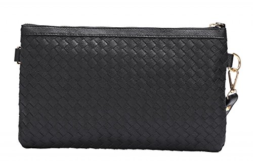 -. Binding : Apparel -. Brand : VOCHIC -. ClothingSize : one size -. Department : womens -. Feature : Material: PU leather. / Dimensions: 11''4/5 L x 7/10 '' W x 7''1/2 H. / Removable shoulder chain has a drop of about 23 in. / Main compartment with brass buckle, two interior zipper pockets and two slots for your iPhone, makeup mirror or something else. / Classic black clutch designed in weave style, low profile but elegant. -. Label : VOCHIC -. Manufacturer : VOCHIC -. MPN : BH0001 -. PartNumber : BH0001 -. ProductGroup : Apparel -. ProductTypeName : BAG -. Publisher : VOCHIC -. Size : One Size -. Studio : VOCHIC -. Title : Vintage Faux Leather Womens Clutch Purse Black Zipper Handbag Wallet with Shoulder Strap