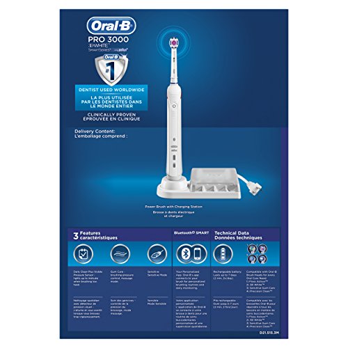 Oral-B Pro 3000 Power Rechargeable Electric Toothbrush with Bluetooth Connectivity Powered by Braun. Compatible with the following replacement toothbrush heads: CrossAction, 3D White, Sensitive Clean, Precision Clean, FlossAction, TriZone, Deep Sweep, ProWhite, Ortho, PowerTip, and Dual Clean.