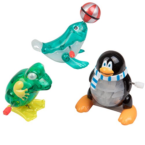Studio : California Creations Publisher : California Creations Binding : Toy Product Description If you like wind-up toys, then you'll love this Animal Set that does Unique Tricks. Simply rotate each spring clockwise to wind up the toy. Let the spring go and be amazed. Provides hours of fun and entertainment for both children and adults. Created by California Creations, this 5 Pack includes: Bruno - Bike Riding Bear, Mandy - Jump Roping Panda, Sasha - Spinning Seal, Peter - Back Flip Penguin, and Winky - HoppingBlinking Frog! Bruno rides on a trusty tricycle and zooms across any flat surface! Wind Mandy up and see how many times her jump rope can go around! As a bonus, her ears even wiggle! Sasha is an interesting marine mammal. She did not learn to play with her ball in a circus or zoo. Instead, Sasha spins her ball, flaps her tail, and spins in circles! She puts on quite a show. Peter and his striped sweater flip in circles, over and over again! Winky bats her eyelashes while leaping gracefully. Each wind up toy measures approximately 3" tall. Includes 5 different animals recommended for ages 3 and above. 0