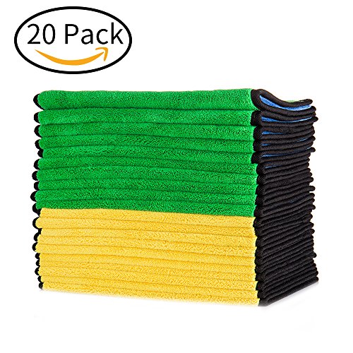 Pack of 20 car towels including 10*green- blue towels, 10*yellow- blue towels 0