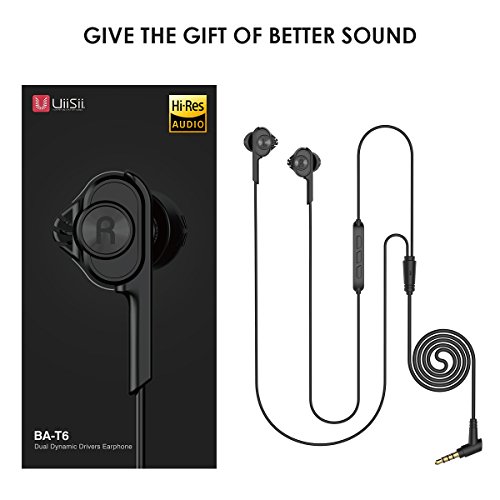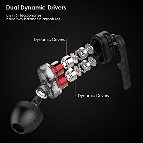 UiiSii T6 Dual Dynamic Driver Ohrhorer In Ear Balanced Armature Kopfhorer mit tiefer Bass Gerauschreduzierung Lautstarkeregelung und Mikrofon