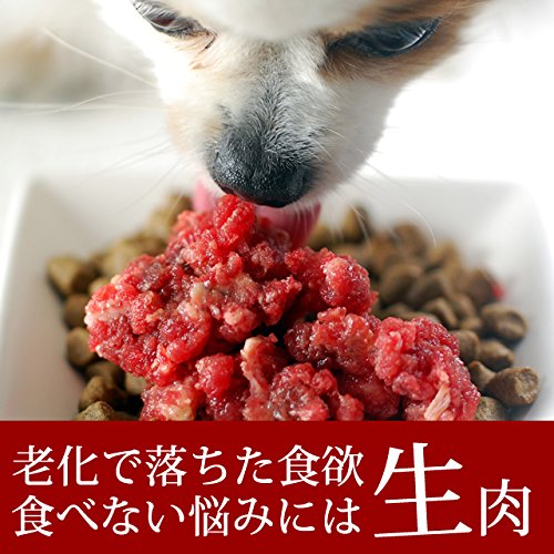 原材料:原材料:馬肉、コエンザイムQ10、タウリン、BCAA、 / 保証分析値(100g中) カロリー:128kcal、タンパク質 21g、脂肪 2.6g、ビタミンB2 0.24mg、鉄分 4.3mg、カルシウム 11mg