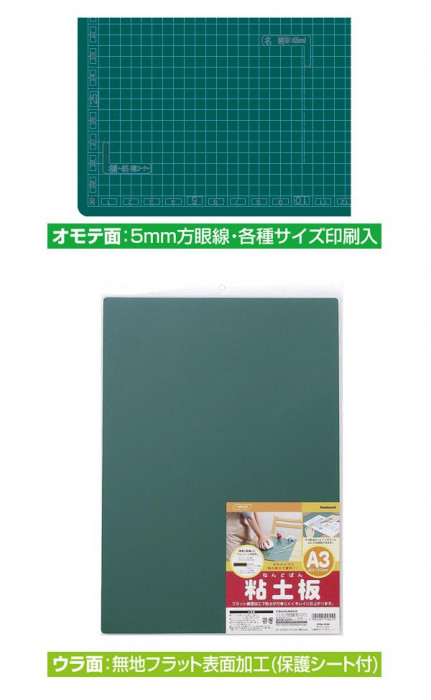 切り目が目立ちにくい素材を使用し、5mm方眼線入りの便利なカッティングマットです。裏面は粘土板としても使用できます。