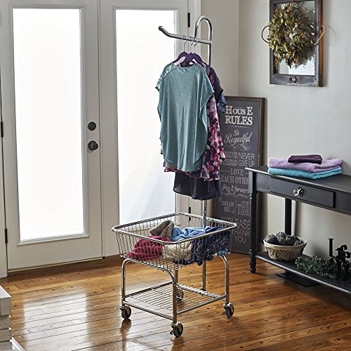 Household Essentials 6028-1 Rolling Laundry Cart with Hanging Bar - Chrome Finish