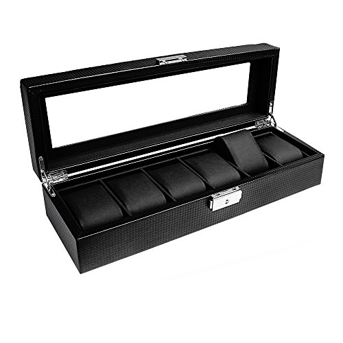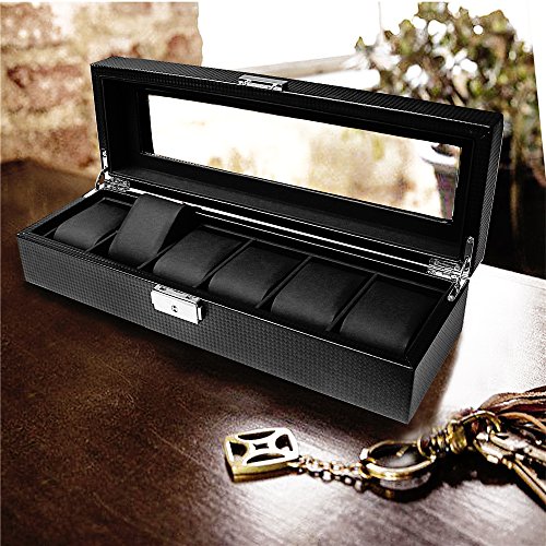 Monsiter Watch Box 6 Slots Leather Display Organizer for Men