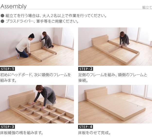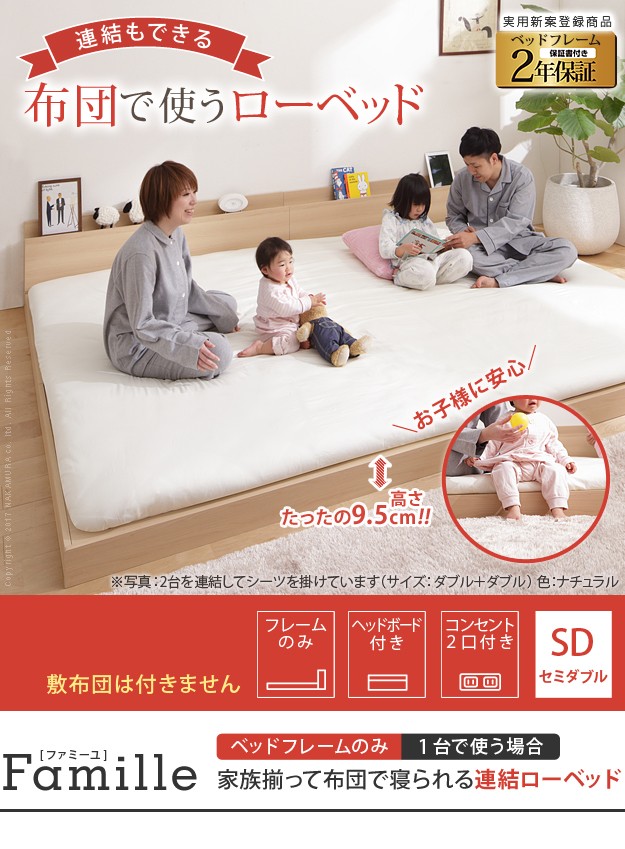 ●フロアベッド 連結ベッド ロースタイル スリムヘッドボード 2口コンセント