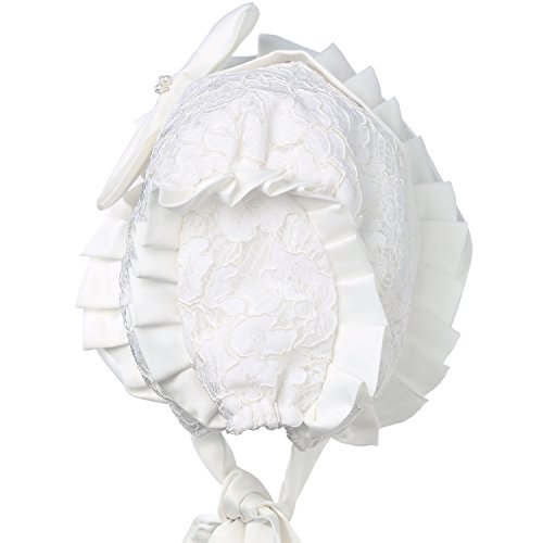 Binding : Apparel Product Description A bonnet is any of a wide variety of headgear for both sexes-most often female-from the Middle Ages to the present.As worn by women and girls,bonnets were hats worn outdoors which were secured by tying under the chin, and often which had some kind of peak or visor,took the place of protection from sun,prevent wind-chapping,hold the hair in place, protect styled hair or keep it tidy,the term has long been popular in both civilian life and in the Royal Regiment . Baby Bonnets are a time old tradition that carries into present day because of their elegance and functionality. They're offered in small to large sizes then tie at the chin with two silk ribbons for a more secure and comfortable fit. Carry the tradition in your family with a bonnet from Hanakimi you can't find anywhere else. For parties and photos, choose from baby girl bonnets for the perfect accessory to accent wisps and curls. Lace, netting, beads and bows add just the right touch to these handmade bonnets. XXS/Newborn Fit for 0-3 Months, XS/3M Fit for 3-6 Months, S/6M Fit for 6-12 Months, M/12M Fit for 12-24 Months, L/24M Fit for 24-36 Months, XL/36M Fit for 36-48 Months. 0