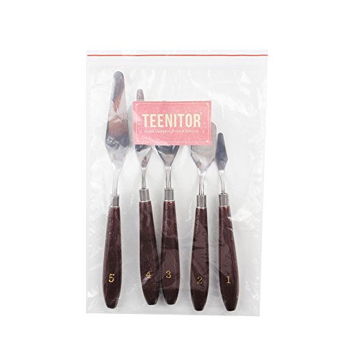 Teenitor 3D Print Removal Tools with Sturdy Wooden Handle, Tool Kit for 3D Printer Spatula Palette Knife Painting Enhanced Version Pack of 5