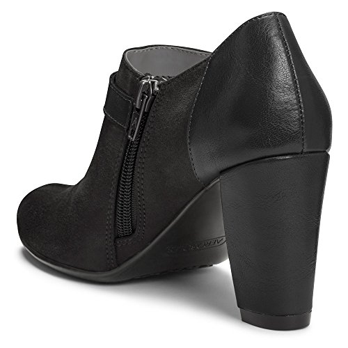 Product Description Daring and modern shootie with a trend-right styling to inspire your casual chic outfits. bold hardware on a front strap and 3” covered heel make the look a stand-out. inviting feel from heel rest technology makes for a totally wearable style, even if you’re on the go from am to pm. zipper closure. 0