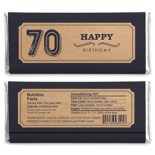 - 70th Milestone Birthday - Dashingly Aged to Perfection - Candy Bar Wrappers Birthday Party Favors - Set of 24 - wrappers & foils (Candy bars not included)