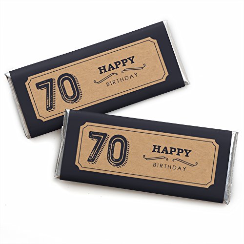 70th Milestone Birthday - Dashingly Aged to Perfection - Candy Bar Wrappers Birthday Party Favors - Set of 24