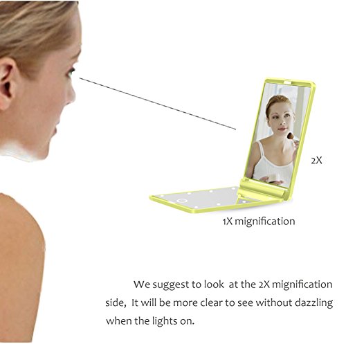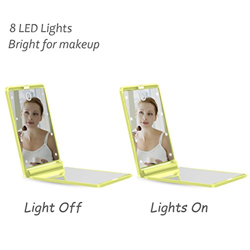 - ★ New Version: Lighted Makeup Travel Mirror, much brighter than old version. 8 led lights helps your make-up in the dark or dim light.The lights are NOT Dimmable.