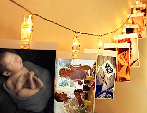 USB-powered 20 LED Photo Clips String Lights - Warm White Fairy Lights for Decoration Hanging Pictures, Notes, Artwork, Cards, Painting, etc; LG005UN