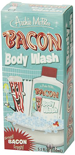 -. Binding : Toy -. Brand : Accoutrements -. Color : Multi-colored -. EAN : 0640746922671 -. Feature : Plastic bottle / 5.1 fl. oz. (150 mL) of clear, meaty liquid soap / Your dog will love you even more after you shower with this -. IsAdultProduct : 0 -. Label : Flat River Group -. Manufacturer : Flat River Group -. Model : 12416 -. MPN : 12416 -. PackageQuantity : 1 -. PartNumber : 12416 -. ProductGroup : Toy -. ProductTypeName : TOYS_AND_GAMES -. Publisher : Flat River Group -. Size : 5.1 Ounces -. Studio : Flat River Group -. Title : Accoutrements Bacon Body Wash -. UPC : 739048124163 -. Warranty : No Warranty