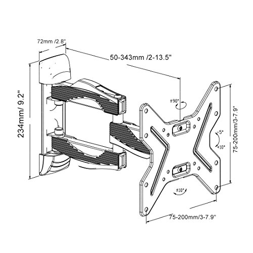 -. Feature : Universal VESA compatibility: 75x75 mm 100x100 mm 200x200 mm / Loading weight capacity:Max.55 lbs. (25kg) / Up and Down Tilt angle: -5 degree ~10 degree. Right and Left swivel angle: -90 degree~90 degree / Adjust TV screen height from 26" to 42" / Common hardware pack included in the package
