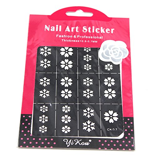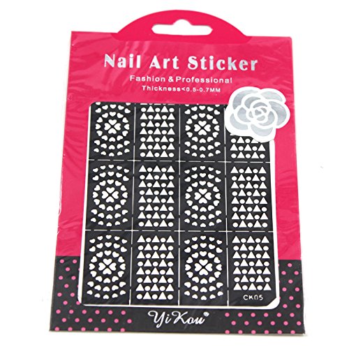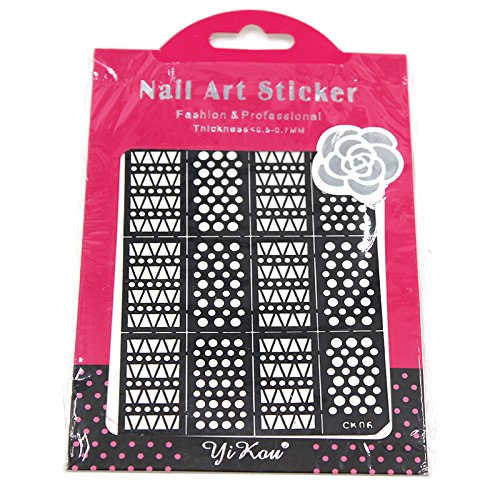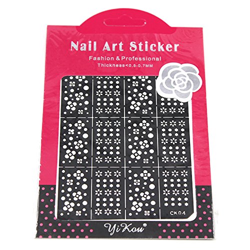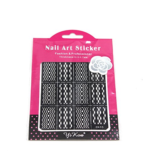Prepare finger nail with base coat and polish, allow to dry completely. Peel backer sheet to expose sticker, remove sticker with care to avoid tearing. Apply sticker firmly to desired nail surface area. Apply the top coat to protect the nail stickers well.